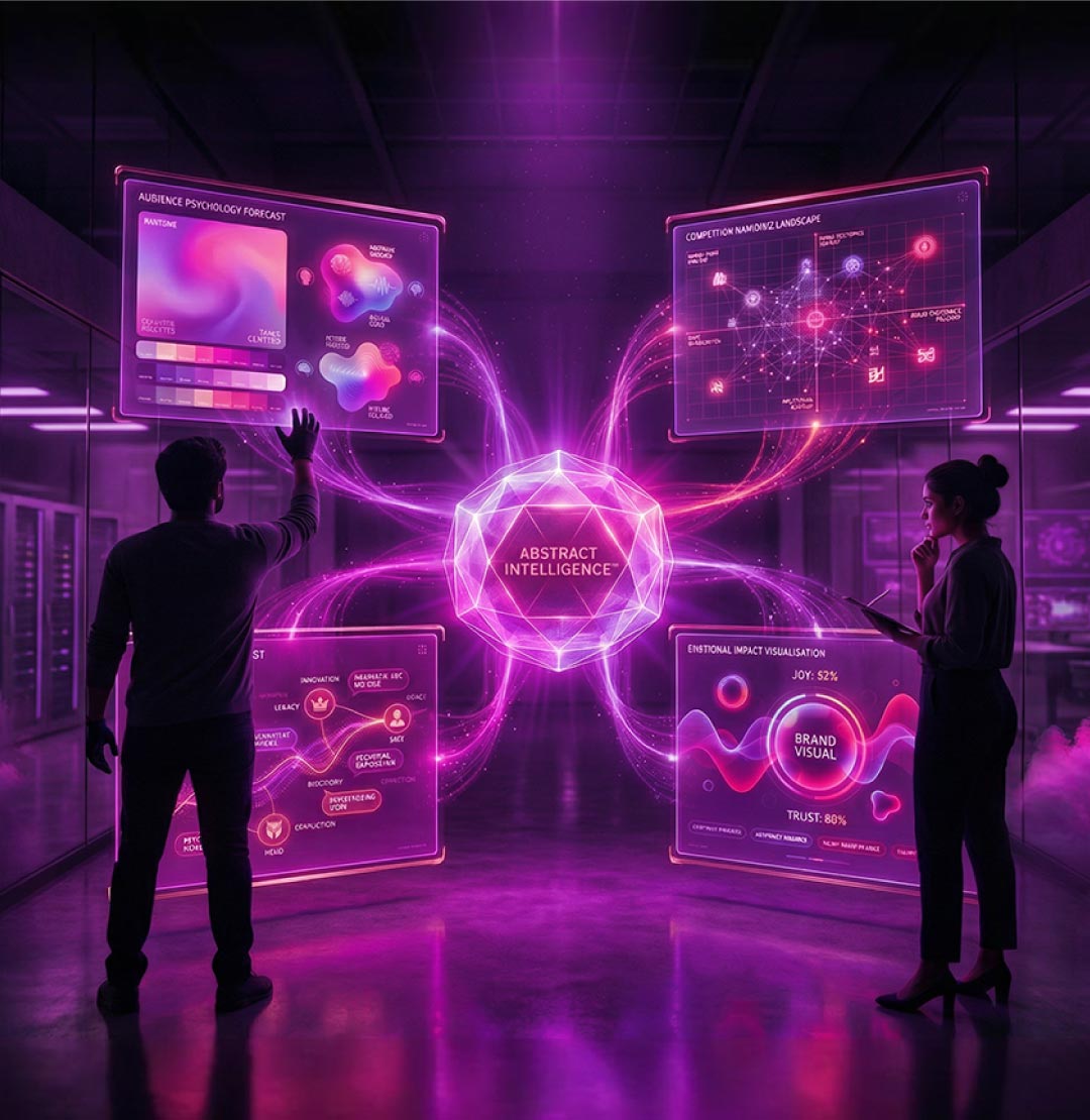 Using Abstract Intelligence™, our AI system studies trends, design sentiment, and audience perception to guide naming, tone, and visual moodboards.